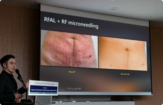 2024第43届大韩医学美容大会及第13届国际干细胞前沿治疗医学会11月底在韩国首尔SC会议中心顺利召开。医学美容形体塑形分论坛中,颜士钧医师发表了题为《联合运用RFAL射频与电波进行宝妈产后修复》的专题演讲,分享了他在产后修复领域创新的治疗方法,对改善产后女性患者的生活质量具有重要意义,并获得与会专家的高度关注与肯定。